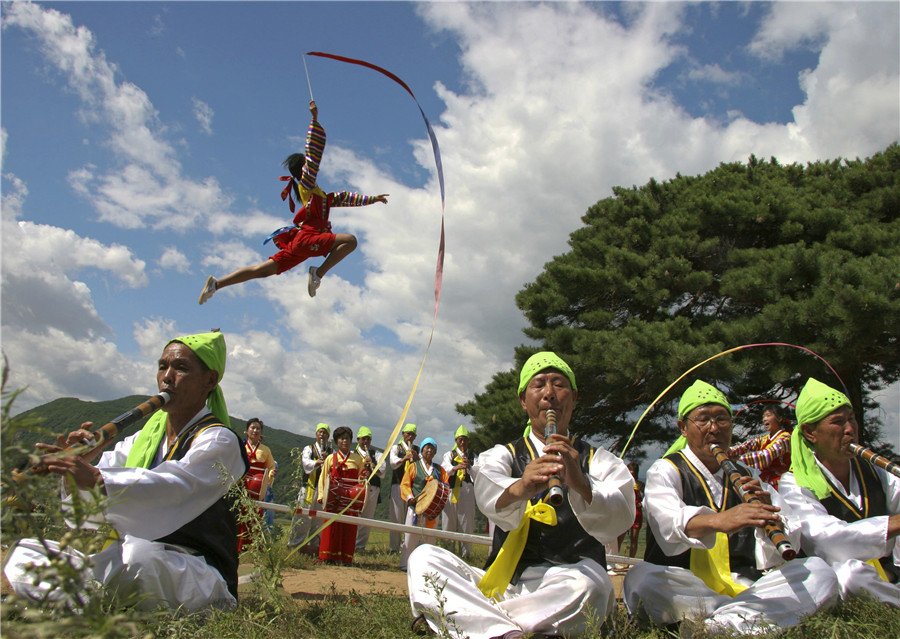 Photo taken by Jin Jinhua shows people of the Korean ethnic group celebrate the Dragon Boat Festival in Yanji city, Jilin province. [Photo provided by cpanet.org.cn] |