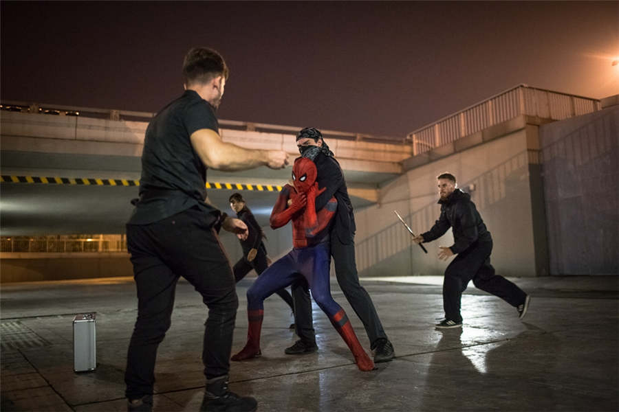 Martial artists perform scene of Spider-Man short film on Aug 12, 2017. [Photo by Roman Pilipey/cpanet.org.cn]