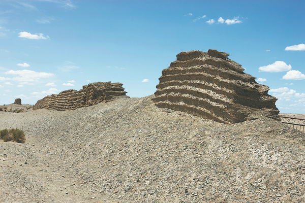 Once surrounded on three sides by water — a strategic choice for its location — the pass now consists of only a rectangular fortress with crumbling rammed-earth walls that blend seamlessly into the surrounding Gobi.