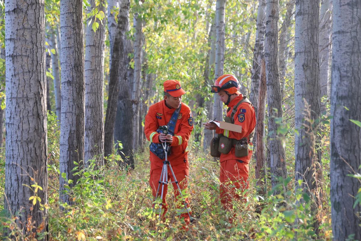 Firefighters measure wind, humidity and flammable content in a forest in Harbin, Northeast China's Heilongjiang province, Oct 2, 2025. [Photo/Xinhua]