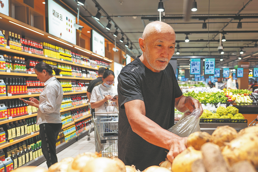 Saulebek Kabylbekov shops for potatoes at a supermarket in Daqing city, Northeast China's Heilongjiang province, July 16, 2025. ZHANG TAO/XINHUA