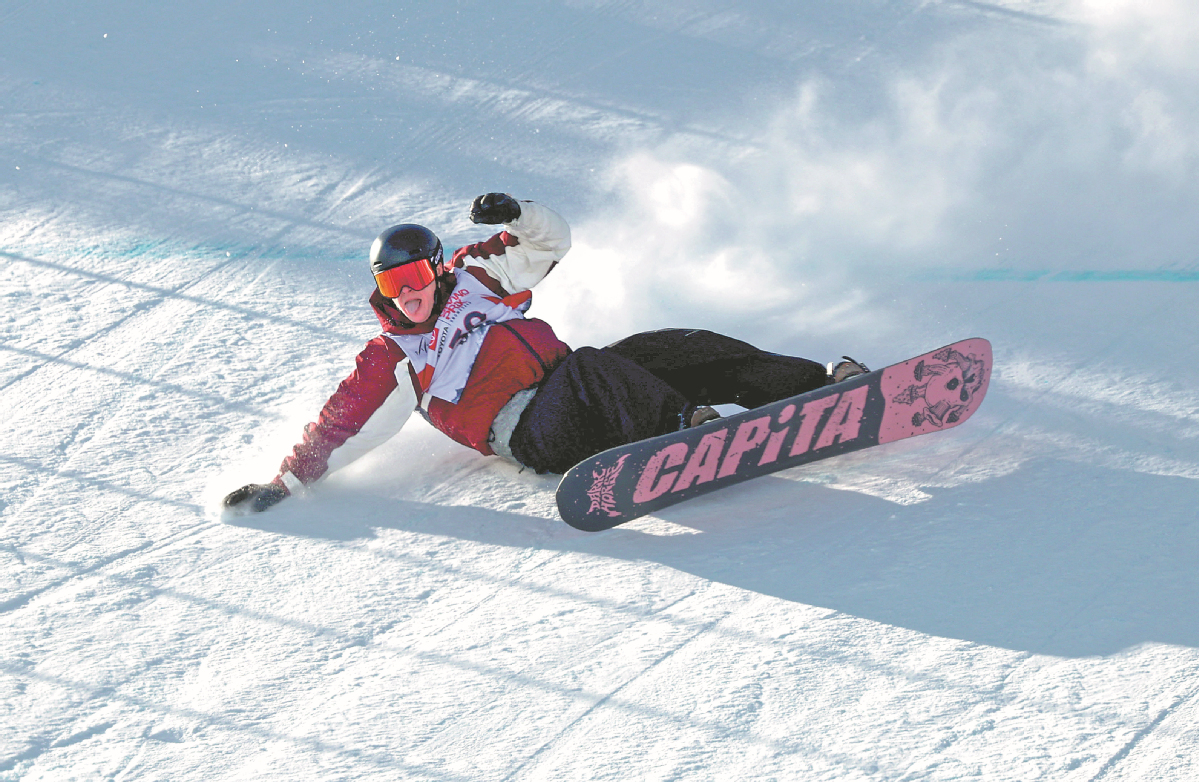 Truth Smith of Team Canada falls while competing in the first run of the Aspen Snowmass men's snowboard slopestyle finals during the Toyota US Grand Prix 2026 in Colorado on Jan 10. [Photo/Agencies]
