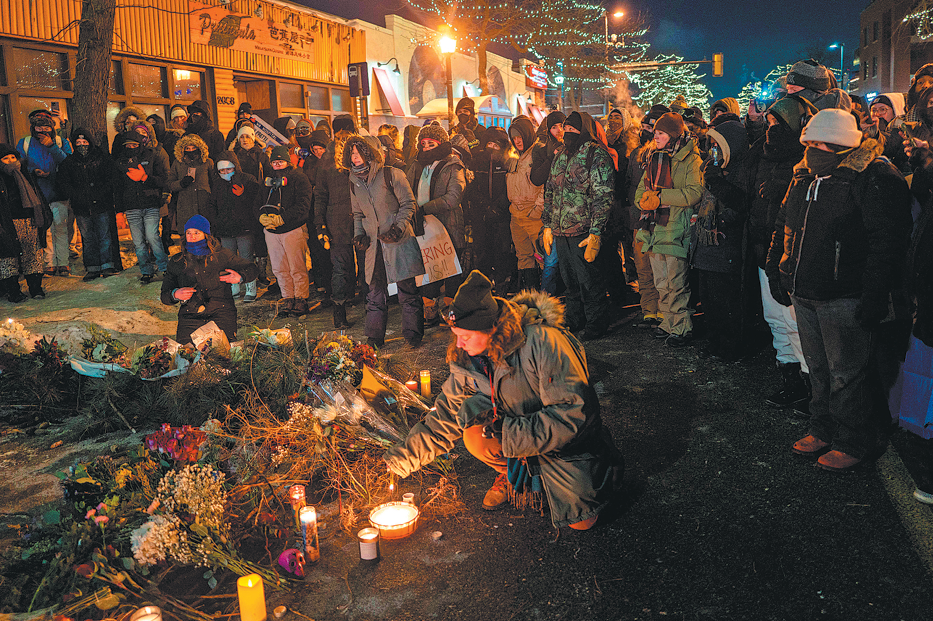 People pay their respects during a candlelight vigil for Alex Pretti after he was shot and killed earlier in the day on Saturday in Minneapolis, Minnesota. BRANDON BELL/GETTY IMAGES