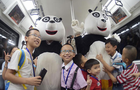 Soldiers don a different uniform as they bring joy to orphans in Taizhou, Zhejiang province, on Christmas Eve. Jia Ce/For China Daily |
