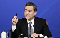 Foreign Minister Wang Yi gives a press conference at the third session of China's 12th National People's Congress in Beijing on March 8, 2015. He spoke on a wide range of topics, including "Belt and Road" initiatives, bilateral relations with the United States, Japan and others, South China Sea issue.