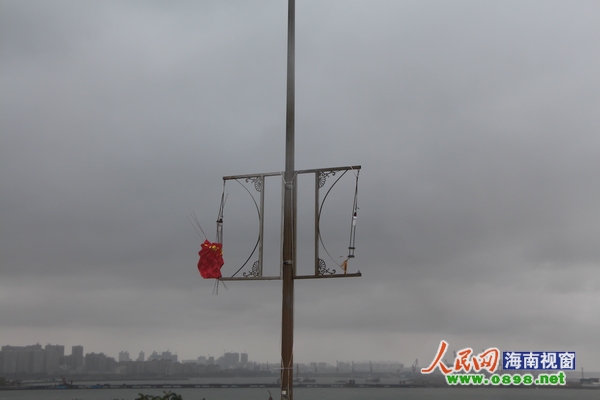 30日上午10時(shí),記者在??谑惺兰o(jì)大橋上,看到大橋兩側(cè)路燈上為慶祝國(guó)慶節(jié)而布置的燈籠被風(fēng)雨吹得七零八落,無(wú)法再支撐到10月1日。