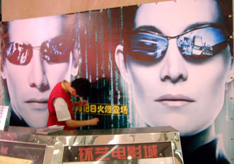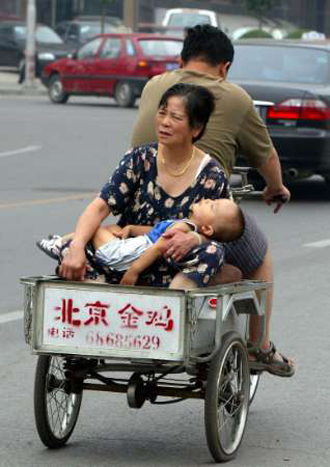 Yao Ming (first from right) of Houston Rockets, Mangke Bateer (second form right) and Melbourne Tigers captain Andrew Gaze (left) hold T-shirts along with Clara Chong, executive director of the Hong Kong Tourism Board, during a photo session at the Hong Kong Exhibition and Convention Center, August 5, 2003. Yao and Bateer are in Hong Kong to play in an exhibition game against Melbourne Tigers on August 6, 2003. [China News Service] | | | | | | | | | | | | |  | | | A Chinese family rides their tricyle in the vehicle lane in Beijing, August 5, 2003. Bicycle and tricycle are still the main transportation in Beijinghe while the number of automobiles in the capital exceeds two million. [Reuters] | | | | | | | | | | | | |  | | | Models donning costumes of different ethnic styles sashay down a catwalk during a press conference in Beijing August 5, 2003 The event was held to highlight a cultural-exchange tour to Paris this autumn to promote bilateral relations between China and France. [China News Service] | | | | | | | | | | | | |  | | | Tourists observe as a shark is dragged towards the shore at Yalong Berth Bathing Beach in Sanya, South China's Hainan Province July 27, 2003. Local fishermen said they caught the three-meter, one-ton shark by chance. Police will temporarily put the shark under protection while maritime experts decide whether it is a species subject to State protection. [newsphoto.com.cn | | | | | | | | | | | | |  | | | A Chinese worker cleaning a glass roof is silhouetted in the afternoon sun in Beijing, China, Sunday, Aug 3, 2003. Air pollution often leaves a layer of grim and dust that requires regular cleansing by groups of cleaners scaling along the walls of skyscrapers or stepping cautiously over glass roofs. [AP] | | | | | | | | | | | | |  | | | Li Cairong, a 118-year-old woman born in Foshan, South China's Guangdong Province, becomes the oldest person climbing the Great Wall, July 28, 2003. Li is now one of the oldest persons in the world. [newsphoto.com.cn] | | | | | | | | | | | | |  | | | A worker puts up a poster of the star-studded "The Matrix Reloaded" outside a cinema in Shanghai, July 20,2003. The film is proved to be a great hit in China. Pictures International reported on July 22 that it has topped US$1.012 billion at the overseas box office this year. | | | | | | | | | | | | |  | | | A hiker climbs up a dilapidated section of the Great Wall of China, north of Beijing Saturday July 12, 2003. Tourists will be banned from exploring undeveloped sections of the Great Wall, beginning August 1, to protect the ancient monument from damage. Violators face fines of between 200 Yuan (US$24) and 30,000 Yuan (US$3,600). [AP Photo] | | | | | | | | | | | | |  | | | A woman videotapes a line of flags with past Olympic logos Monday, August 4, 2003 in Beijing, as the capital city unveiled the official Olympic emblem for the 2008 Olympic Games on Sunday. [newsphoto.com.cn] | | | | | | | | | | | | |  | | | Elderly couples in Fuzhou, Fujian Province exchange gifts on Qixi, which is regarded as Valentine's Day in China, August 4, 2003. The festival, falling on the seventh evening of the seventh month of the lunar calendar, can be traced back to an ancient legend about a devoted couple - a shepherd and a weaver - meeting across the Milky Way on the evening every year. [newsphoto.com.cn] | | | | | | | | | |