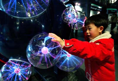 A Chinese boy plays in the Shanghai Science
