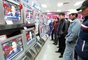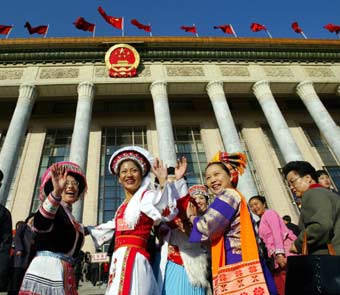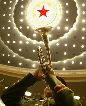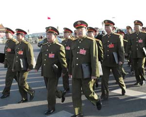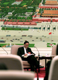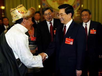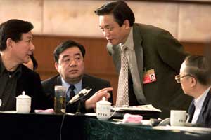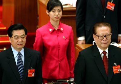 | Jiang Zemin and Hu Jintao join panel discussion of the Army delegation |