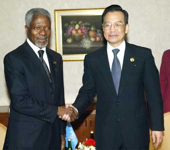 | Annan meets Wen Jiabao at tsunami summit |
