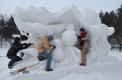 | Snow lanterns shine light of condolence |