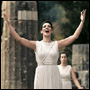High Priestess Theodora Siarkou here on Sunday lighted the Olympic torch with a backup flame in an official lighting ceremony for the Turin 2006 Winter Olympic Games.
