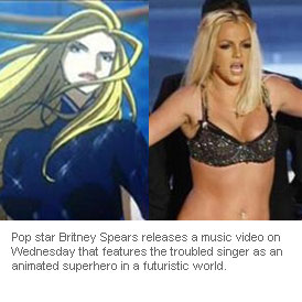 Pop star Britney Spears releases a music video on Wednesday that features the troubled singer as an animated superhero in a futuristic world.