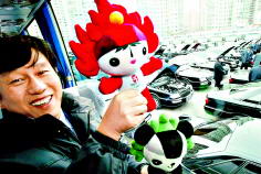 《北京晚報》2月26日報道,今天上午,王金彪師傅一早就來到了公司停車場,并把“福娃”擺進車內(nèi),接受市交管局車輛管理所對為“兩會”服務(wù)車輛的檢驗。首汽為即將召開的全國“兩會”配備了大小車輛447部,每輛車都配有福娃和奧運倒計時牌。車輛今天下午進入“兩會”駐地。張玉軍 攝