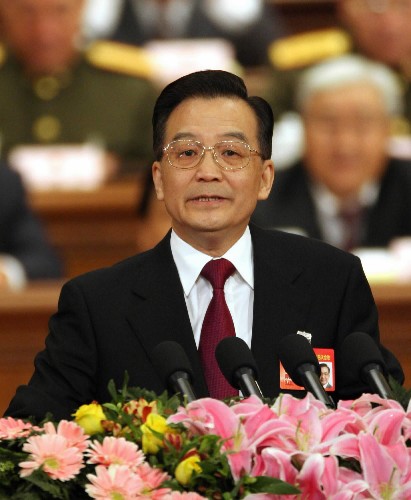 溫家寶總理在開幕會(huì)上作工作報(bào)告(新華社圖片)