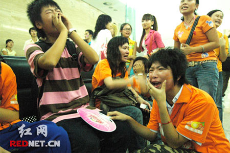 2005年超女4強(qiáng)抱頭痛哭(資料圖)