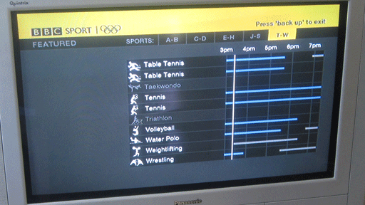 我從1996年就在英國(guó)看奧運(yùn),記得當(dāng)年只能看電視臺(tái)所選擇轉(zhuǎn)播的比賽,有一些比賽我根本就不感興趣,而喜歡的項(xiàng)目幾乎看不到,只能在報(bào)紙上看看比賽結(jié)果。尤其是一些在英國(guó)不那么熱門的項(xiàng)目,最多也只能在電視上看到幾個(gè)畫面,比如乒乓球、羽毛球,我好像連畫面也沒有看到。當(dāng)時(shí)的互聯(lián)網(wǎng)也只有文字,圖片很少。